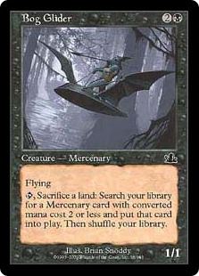 , Sacrifice a land: Search your library for a Mercenary permanent card with converted mana cost 2 or less and put it onto the battlefield. Then shuffle your library.