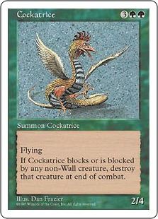 Source: Fifth Edition (5ED) Rarity: R Artist: Dan Frazier Mana Cost: Card Type: Creature — Cockatrice Rules Text: Flavor Text: Format Legality: |