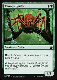 Source: Battlebond (BBD) Rarity: C Artist: Christopher Rush Mana Cost: Card Type: Creature — Spider Rules Text: Flavor Text: Format Legality: |