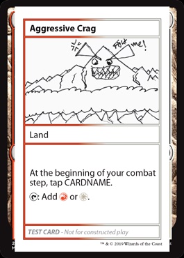 Aggressive Crag Land At the beginning of your combat step, tap CARDNAME. : Add or . |